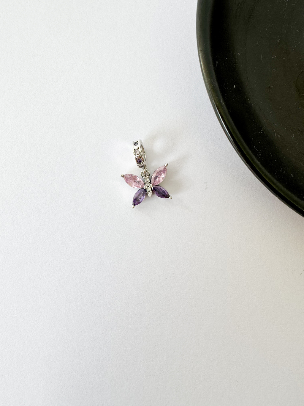 Delicado e cheio de vida, o Berloque Borboleta Rosa e Lilás é perfeito para representar liberdade, transformação e beleza. Seu design traz asas superiores em tom rosa e asas inferiores em lilás, criando um contraste suave e feminino que destaca ainda mais a leveza da peça.