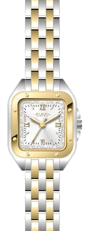 O Relógio Euro Mini Bicolor Quadrado Feminino EU2035ZAJ/4K combina o charme da mini relojoaria com um toque moderno e cheio de personalidade. Sua caixa quadrada Bicolor com aplicação de parafusos no aro adiciona uma pegada urbana, enquanto o mostrador com aro interno de glitter e números romanos traz brilho e elegância na medida certa.